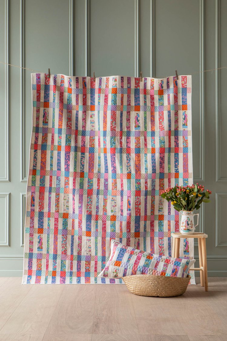 Tilda | Striped Summer Quilt Kit | Tomato and Blue | 65.5 x 76.5in