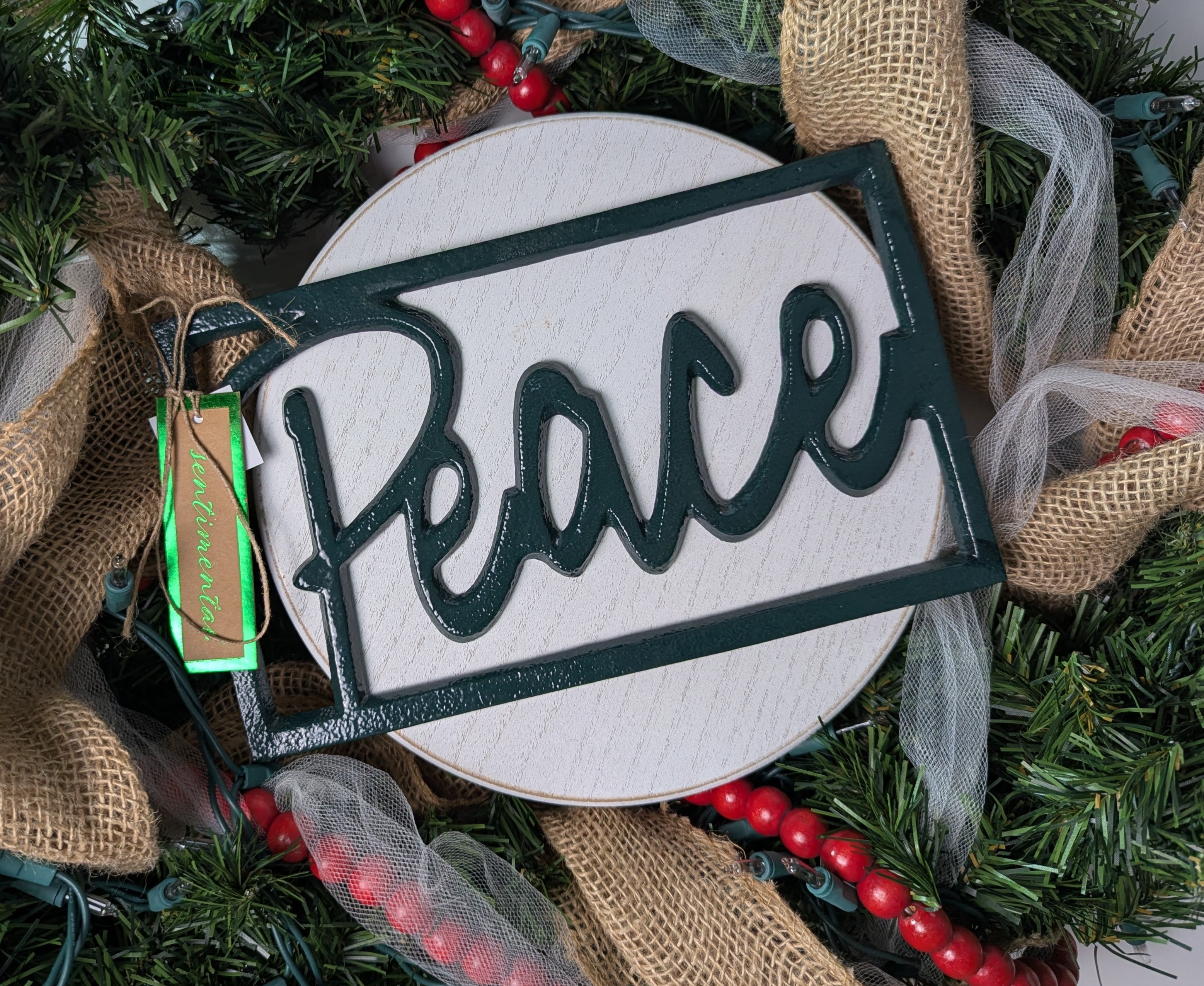 Home Essentials | Metal Christmas Trivet | Green | Peace