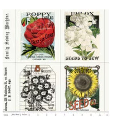 Riley Blake | J. Wecker Frisch | Sewing Seeds III | Seed Catalog Patch | PD15682 | 24in Panel