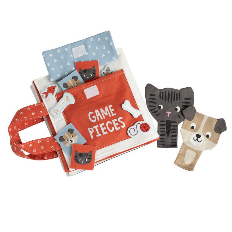 This activity book panel is pre-printed with book pages and fun activities. Match shapes, play tic-tac-toe, do a word search or maze, play fun with finger puppets. Contain pieces storage on back of book. A charity donation from the sale of these panels has been made to a local Texas no kill shelter.