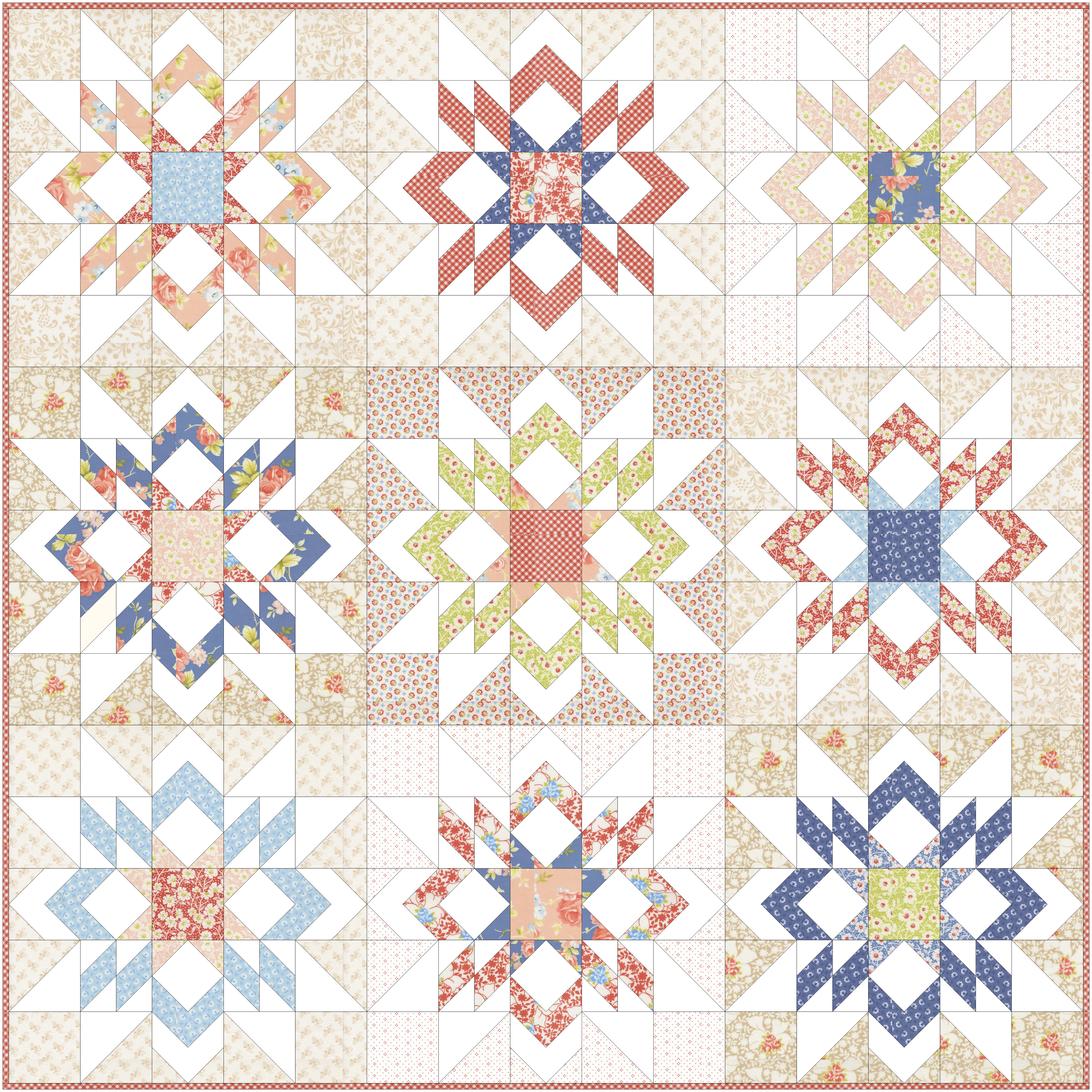 Please note this is a digital rendering using the digital fabric photos from Moda. Fabric placement and sku will be updated when fabric arrives in shop in January