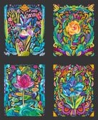 Bright watercolor panel with (4) sections each approx 15 x 19.5in
