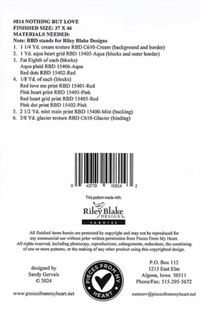 Pieces from My Heart | Nothing but Love | #814 | Table Topper | 37 x 46 | Pattern