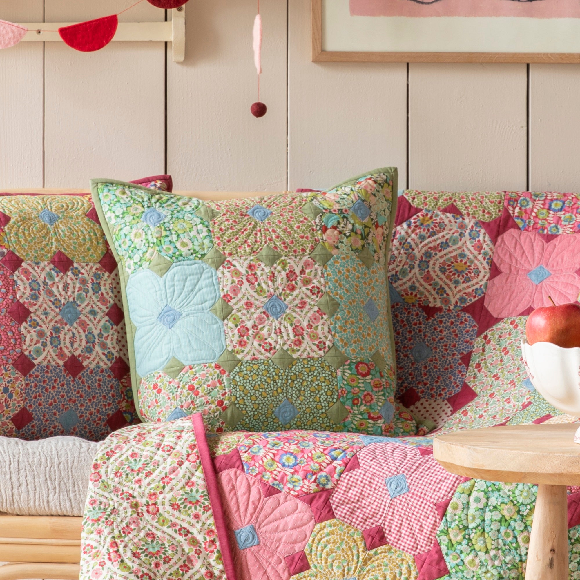 A perfect companion to the Wallflower quilt, this cushion pillow has soothing shades and a pleasing floral pattern. Choose from Chambray Pine or Chambray Burgundy.