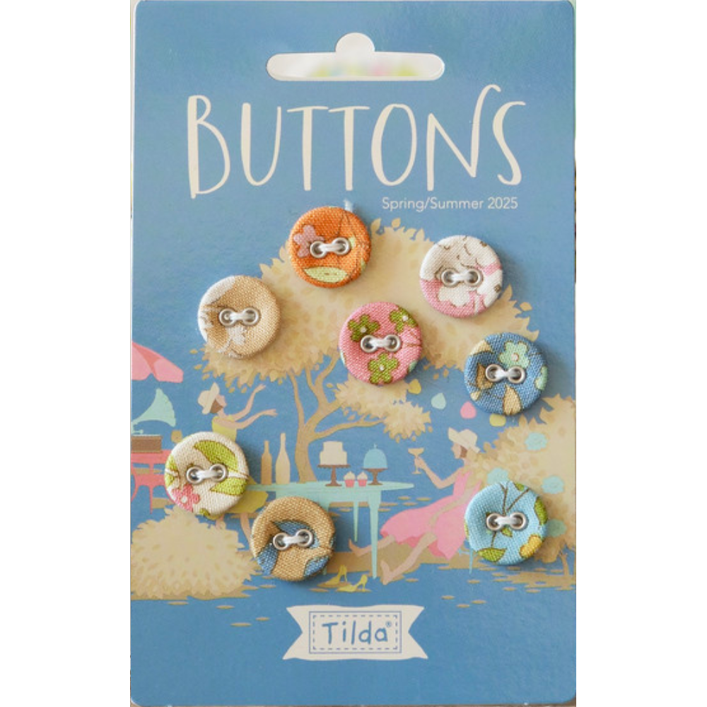 Tilda Jubilee Fabric covered button card include 8pcs 14mm buttons in various prints from the Sunday Brunch fabric line.