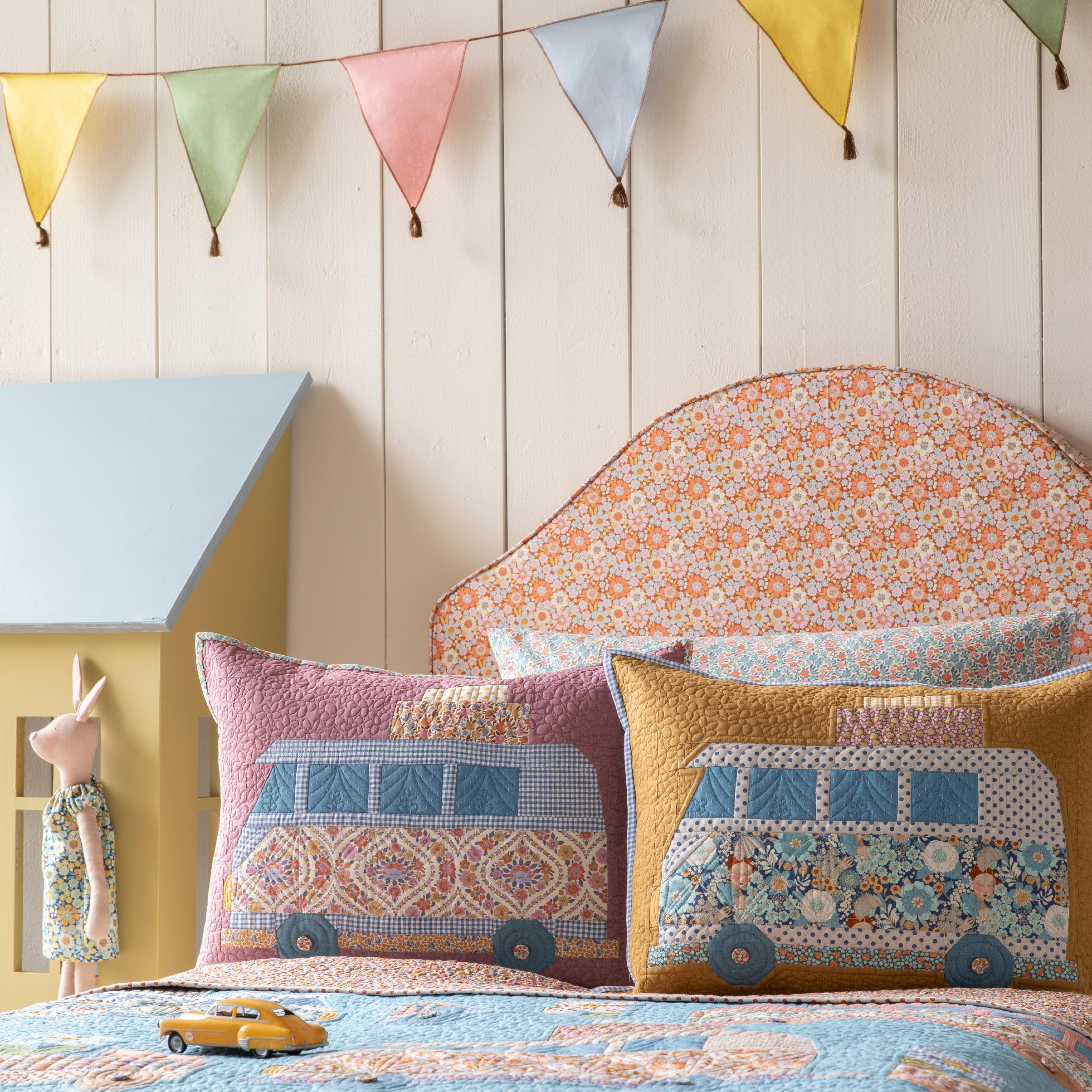 Wanderlust stays close to home with this Camper Van Pillow. Available in four colors. Chambray Mustard or Chambray Rosewood.