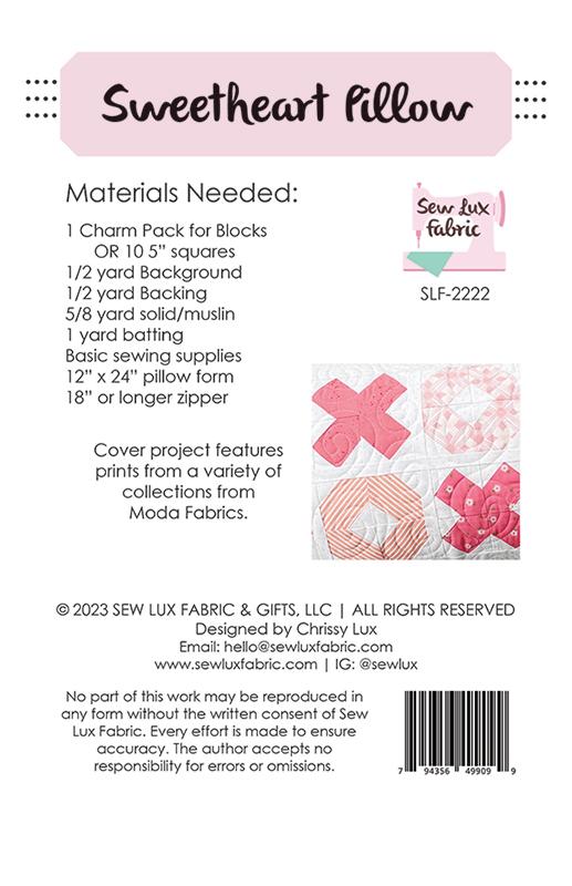 Sew Lux Fabric | Sweetheart Pillow | 12in x 24in