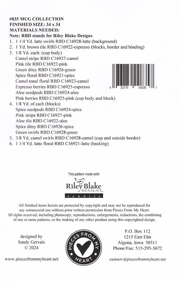 Pieces from My Heart | Mug Collection | #835 | Wall Hanging | 34 x 34 | Pattern