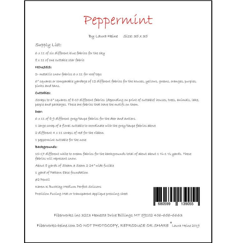 Peppermint collage pattern by Laura Heine. Size 35 x 35. Pattern includes full sized pattern and color step by step photos and instruction to complete the collage quilt.
