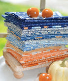 The perfect mix of soft and strong, these shades of denim mix with orange and butterscotch are the perfect transition of seasons. Masculine and dainty two color vintage quilts or scrappy fall vibes come together in Denim and Daisies from Fig Tree and Co.