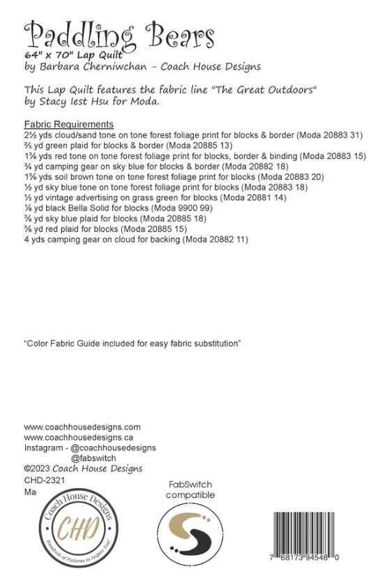 Paddling Bear | Coach House Design | CHD 2321 | 64in x 70in | Quilt Pattern
