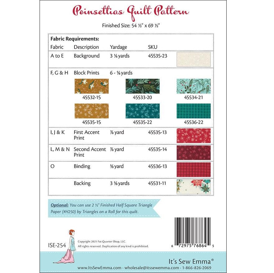 Poinsettias | ISE 254 | It's Sew Emma | Quilt Pattern 54.5" x 69.5"