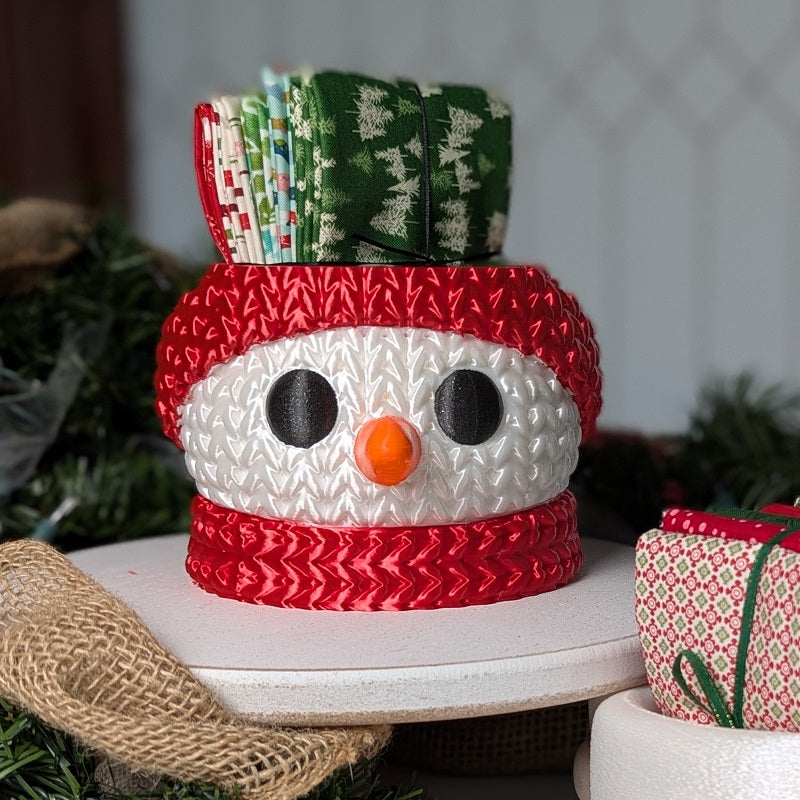3D printed Snowman with 5 Fat Quarters (6w x 5d x 4in with 4in round bottom opening)