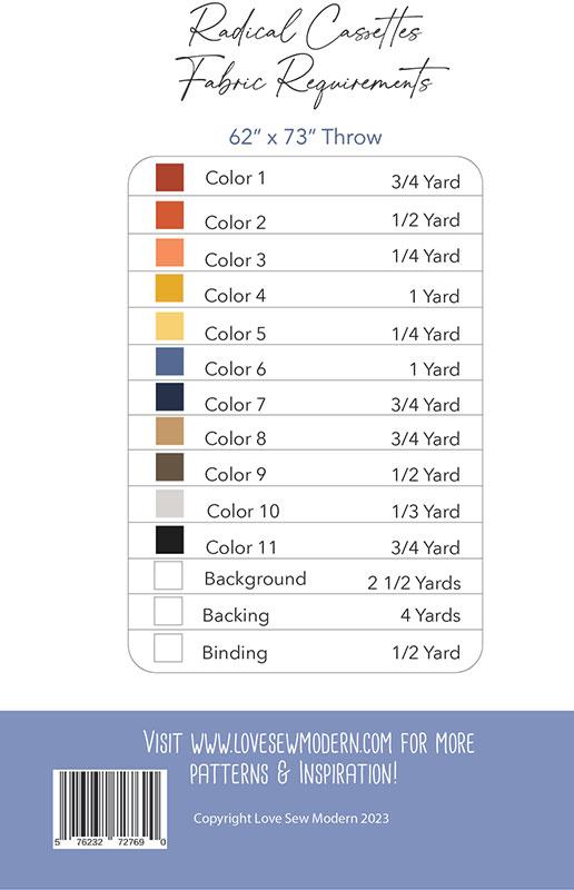 Throw back to the day of cassettes with this retro quilt pattern. Choose 11 modern colors to put together this fun throw size quilt that's sure to please