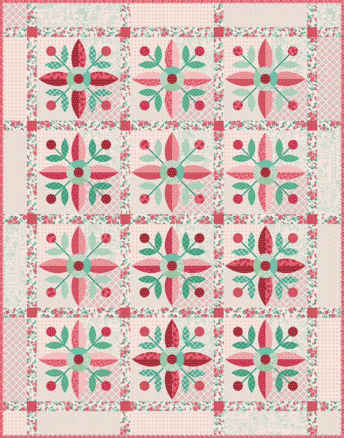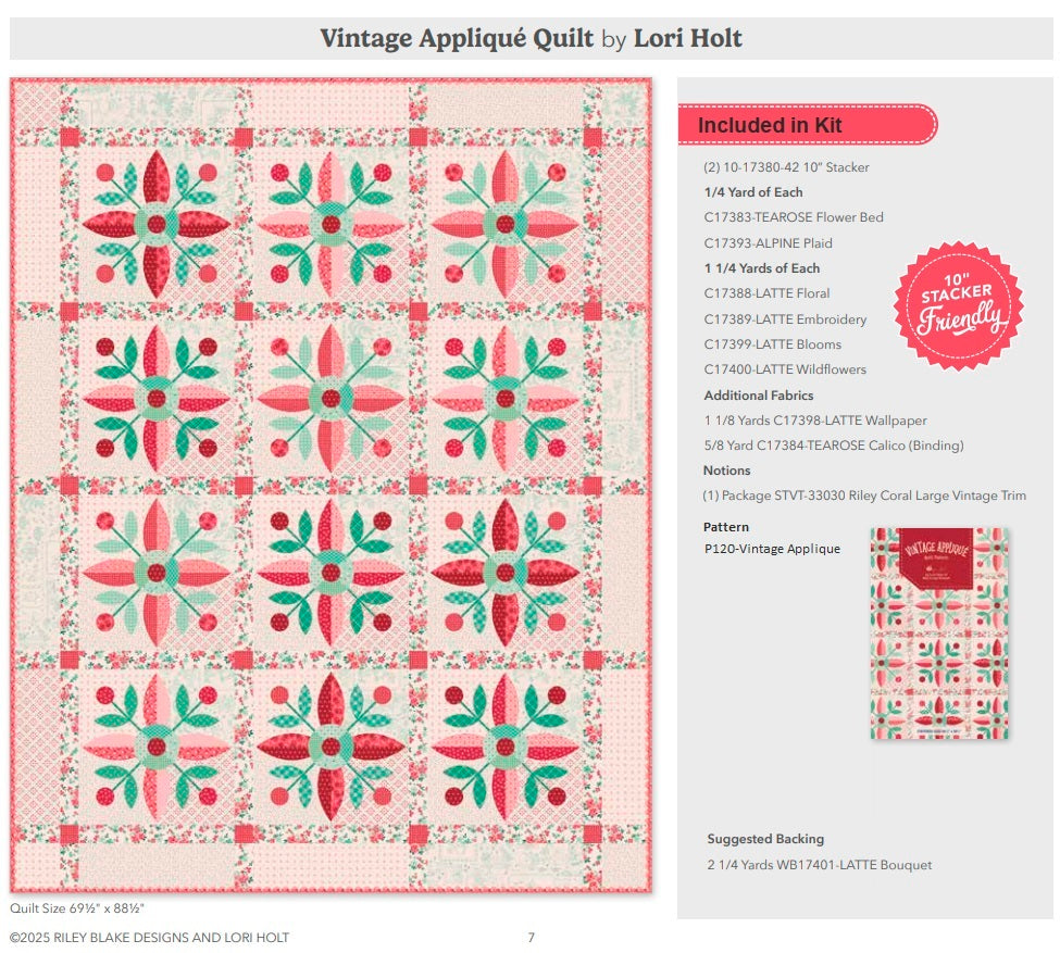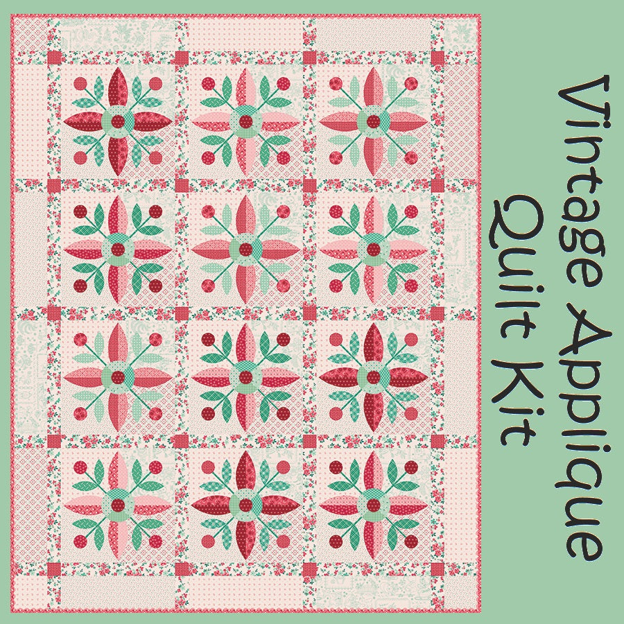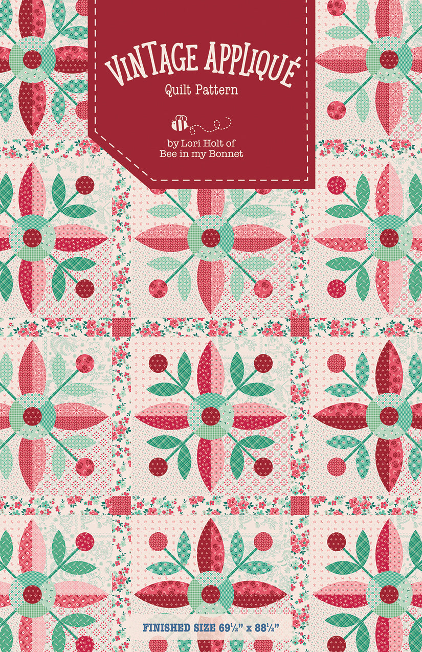 Includes the Vintage Applique Pattern and Lori Holt's Berry and Sage fabrics for the quilt top and binding.