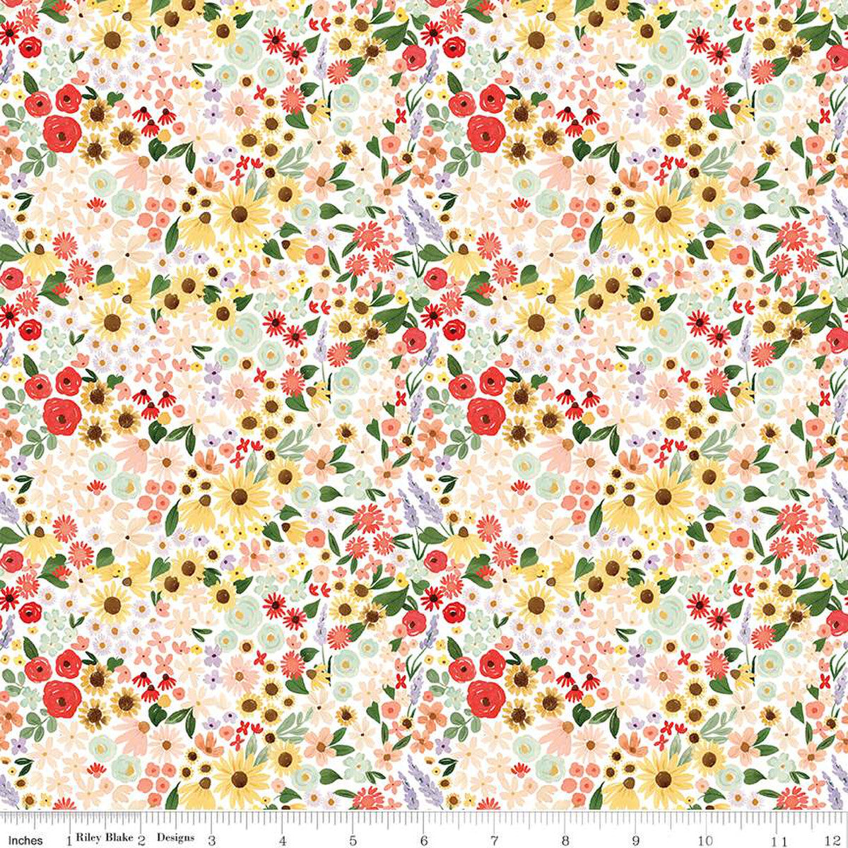 Riley Blake | Homemade | C13723 | White | Floral | Fat Quarters | Continuous Yardage