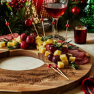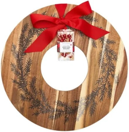 Serve in style this season with our Wreath Serving Board. Crafted in a festive wreath shape with etched greenery details, this food-safe board is perfect for presenting cheeses, hors d’oeuvres, or holiday treats. Finished with a bright red bow, it makes a charming host gift or a beautiful addition to your own holiday gatherings.